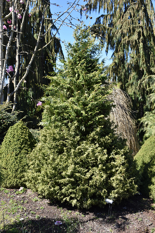 Mariesii Hinoki Falsecypress is a multi-stemmed evergreen shrub with a distinctive and refined pyramidal form. It lends an extremely fine and delicate texture to the landscape composition which should be used to full effect.