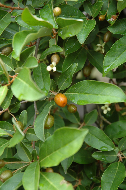 Sweet Scarlet Goumi features subtle clusters of fragrant creamy white trumpet-shaped flowers along the branches in mid spring. It has green foliage with silver undersides. The pointy leaves do not develop any appreciable fall color.