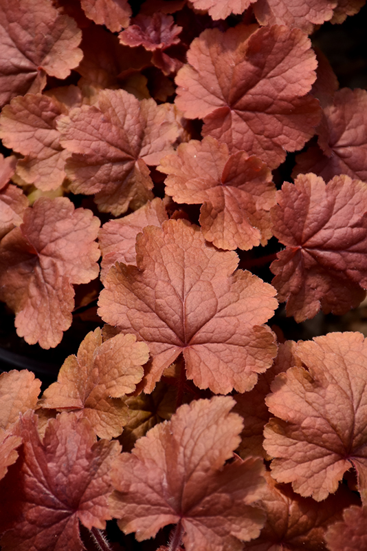 Northern Exposure™ Amber Coral Bells will grow to be about 14 inches tall at maturity, with a spread of 20 inches. When grown in masses or used as a bedding plant, individual plants should be spaced approximately 16 inches apart. Its foliage tends to remain dense right to the ground, not requiring facer plants in front. It grows at a medium rate, and under ideal conditions can be expected to live for approximately 10 years. As an evegreen perennial, this plant will typically keep its form and foliage year-round.