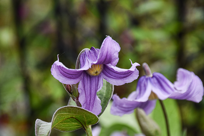 This interesting bush variety produces large, lavender, nodding flowers with contrasting cream stamens; perfect for beds and patio containers; non-vining, may benefit from staking or support from nearby plants