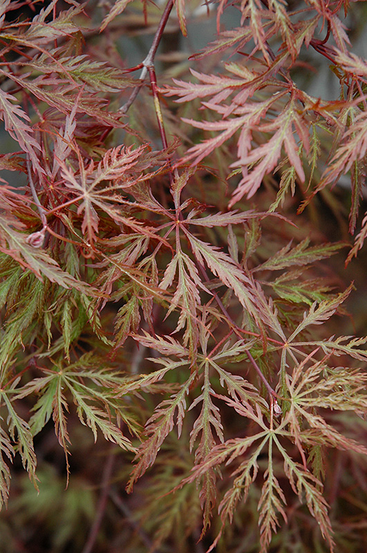 Inaba Shidare Cutleaf Japanese Maple is primarily valued in the landscape or garden for its characteristic tiered habit of growth. It has attractive deep purple deciduous foliage. The small deeply cut lobed palmate leaves are highly ornamental and turn an outstanding crimson in the fall.