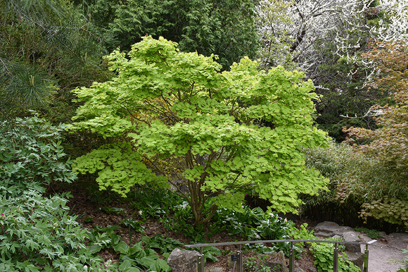 Golden Full Moon Maple has attractive lime green deciduous foliage which emerges gold in spring on a tree with a round habit of growth. The lobed leaves are highly ornamental and turn outstanding shades of gold and red in the fall.