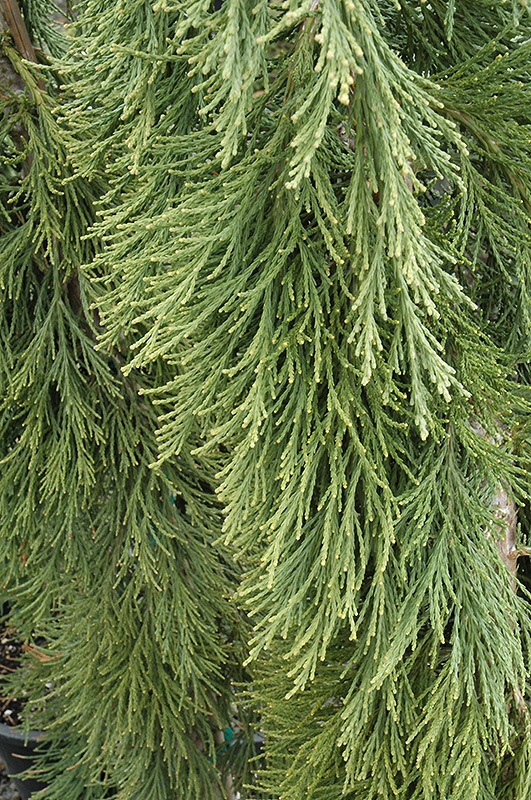 A stunning accent tree with dramatically weeping branches off a rigidly upright form; lovely red-brown, spongy bark and aromatic foliage make this a beautiful accent for the right space; give it a prominent place in the yard